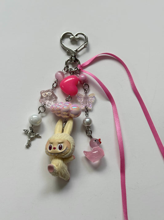 cream yoga labubu keychain