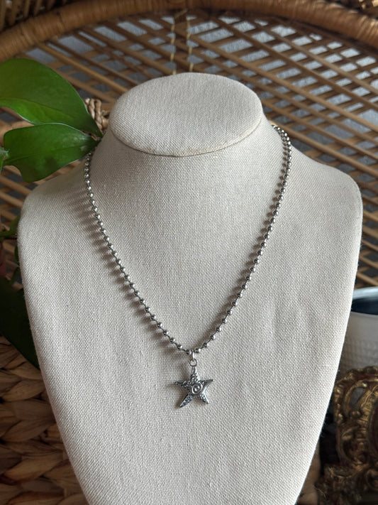 star swirl stainless steel ball chain necklace