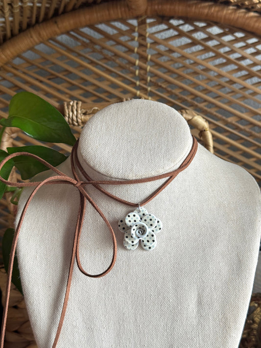 polka dot flower brown suede cord necklace