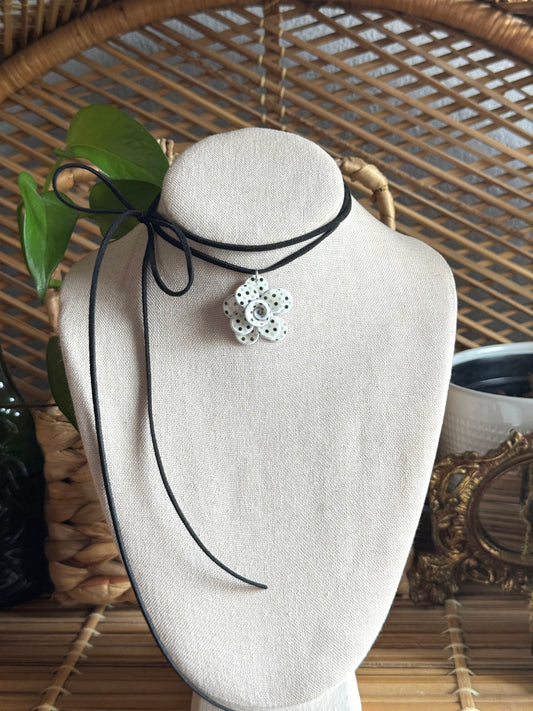 polka dot flower black suede cord necklace